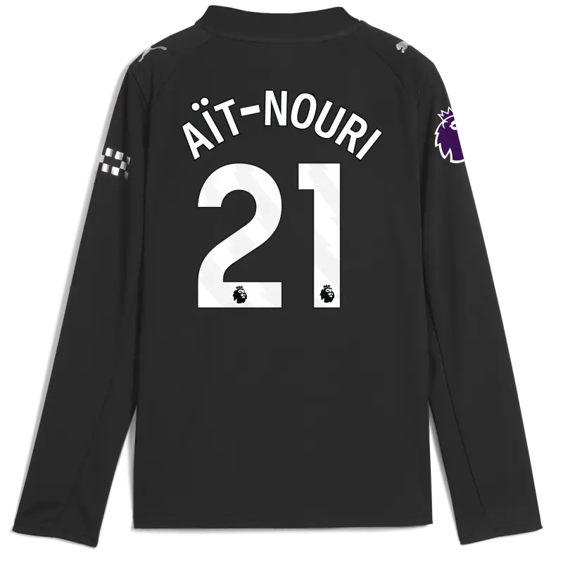 Kids’ Manchester City Premier League Away Jersey 2025/26 Long Sleeve With AÏT-NOURI 21 Printing