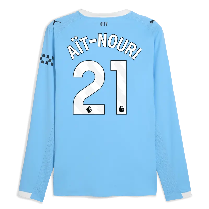 Manchester City Home Authentic Jersey 2025/26 Long Sleeve With AÏT-NOURI 21 Printing