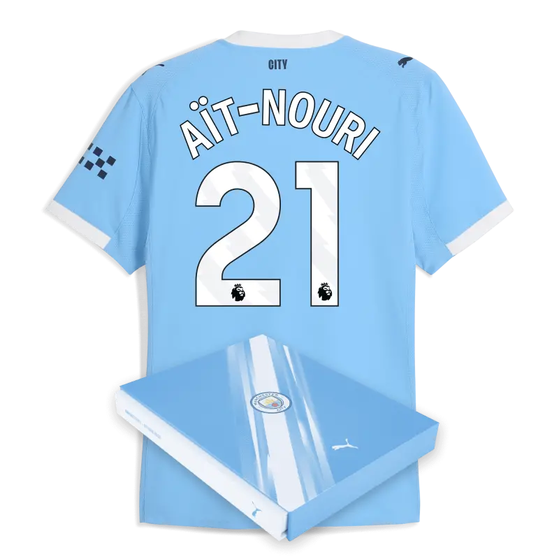Manchester City Home Authentic Jersey 2025/26 With AÏT-NOURI 21 Printing in Gift Box