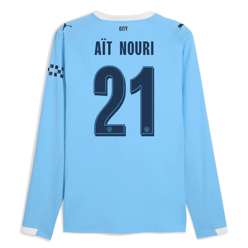 Manchester City Man City Home Authentic Jersey 2025/26 Long Sleeve With AÏT-NOURI 21 Printing