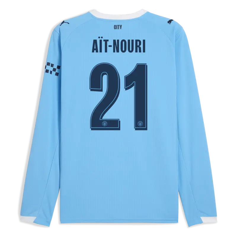 Manchester City Man City Home Jersey 2025/26 Long Sleeve With AÏT-NOURI 21 Printing