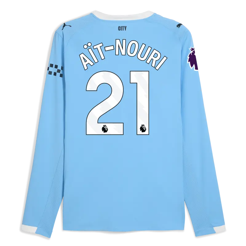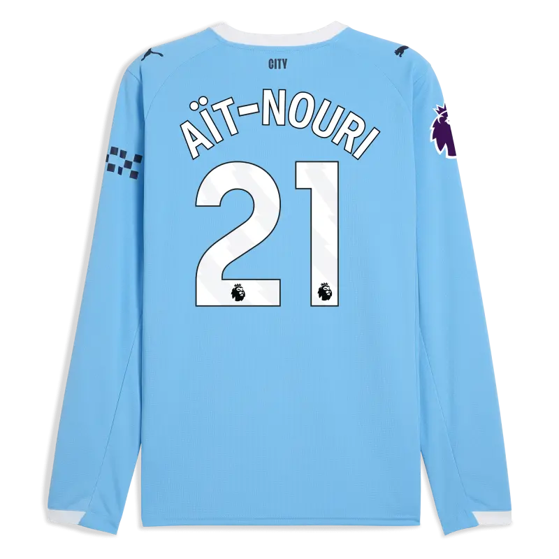 Manchester City Premier League Home Jersey 2025/26 Long Sleeve With AÏT-NOURI 21 Printing