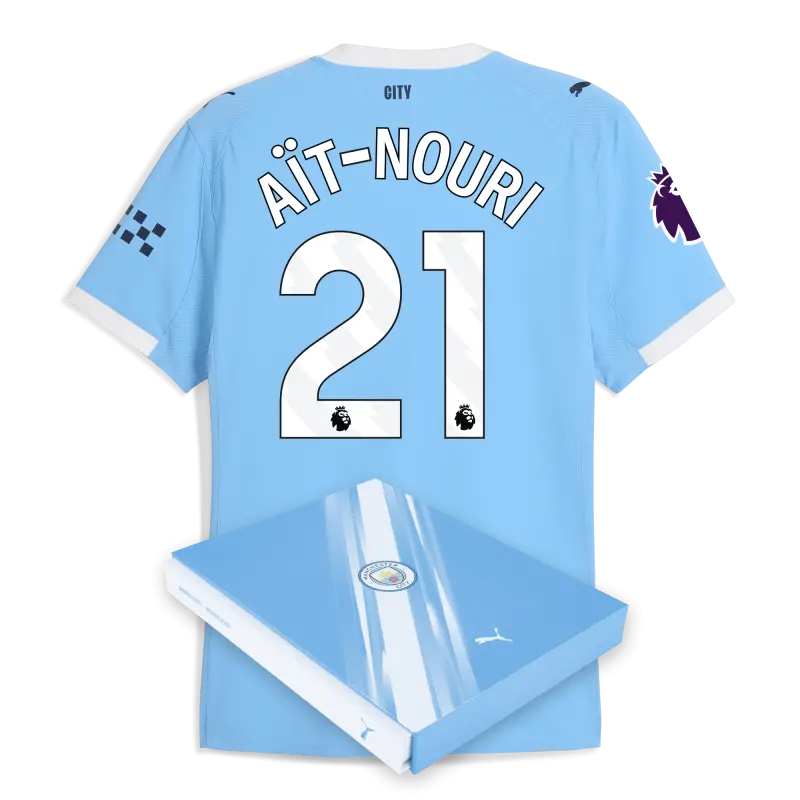 Manchester City Premier League Home Authentic Jersey 2025/26 With AÏT-NOURI 21 Printing in Gift Box