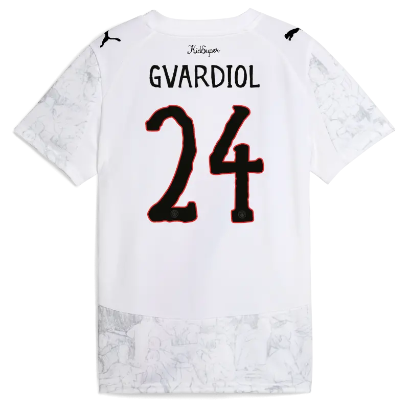 Kids’ Manchester City KidSuper Home Jersey 2025/26 With GVARDIOL 24 Printing