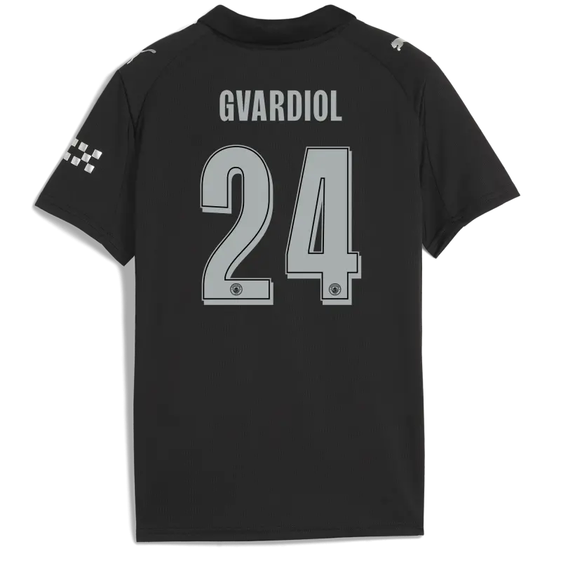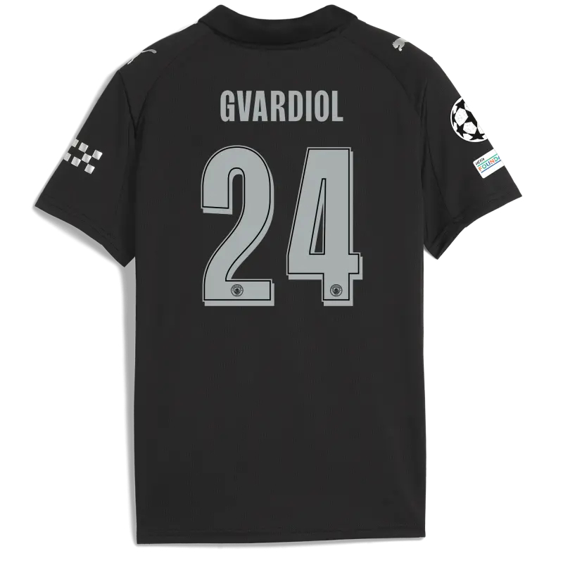 Kids’ Manchester City Man City Champions League Away Jersey 2025/26 With GVARDIOL 24 Printing