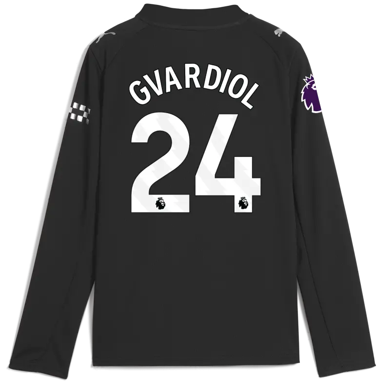 Kids’ Manchester City Premier League Away Jersey 2025/26 Long Sleeve With GVARDIOL 24 Printing