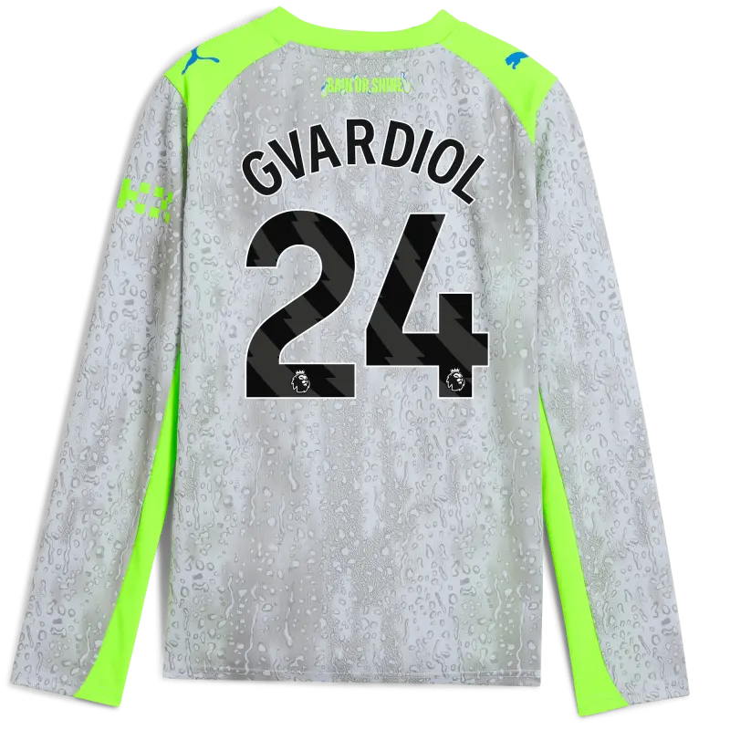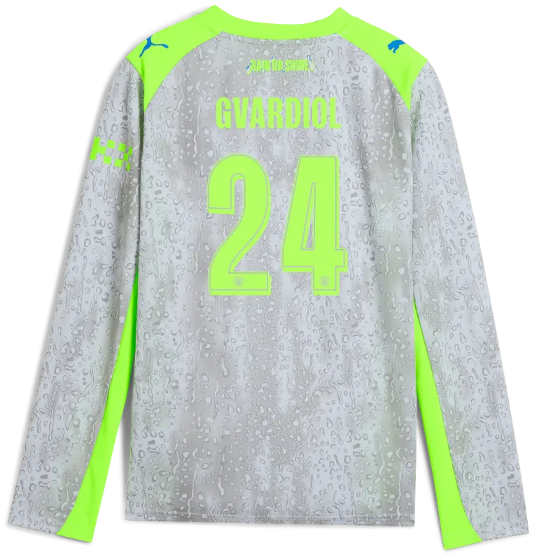 Kids’ Manchester City Third Jersey 2025/26 Long Sleeve With GVARDIOL 24 Printing