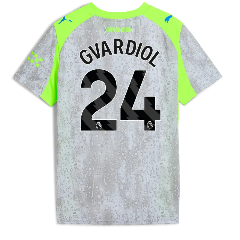 Kids’ Manchester City Third Jersey 2025/26 With GVARDIOL 24 Printing