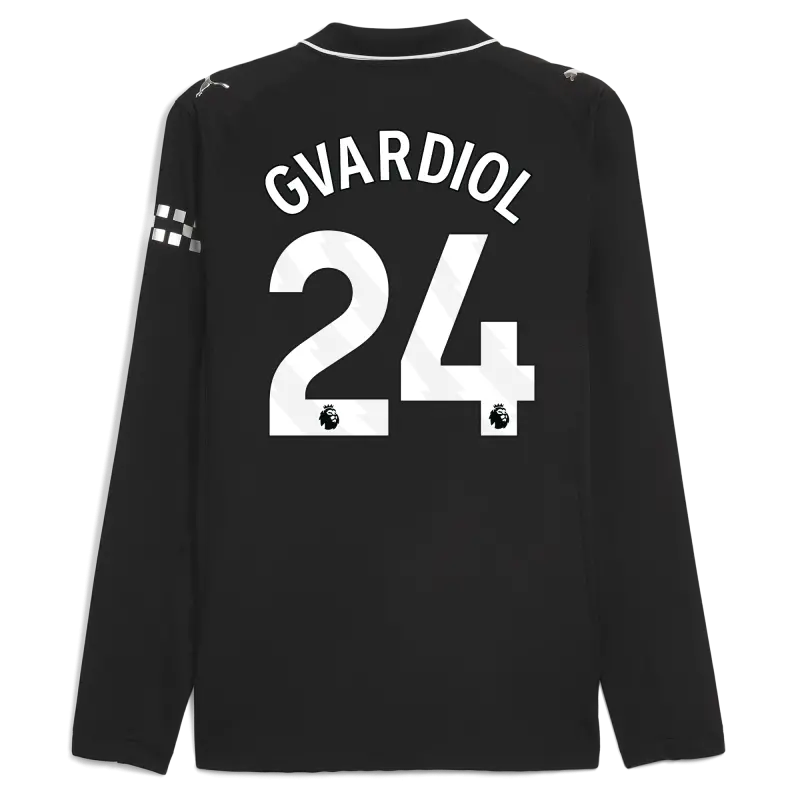 Manchester City Away Authentic Jersey 2025/26 Long Sleeve With GVARDIOL 24 Printing