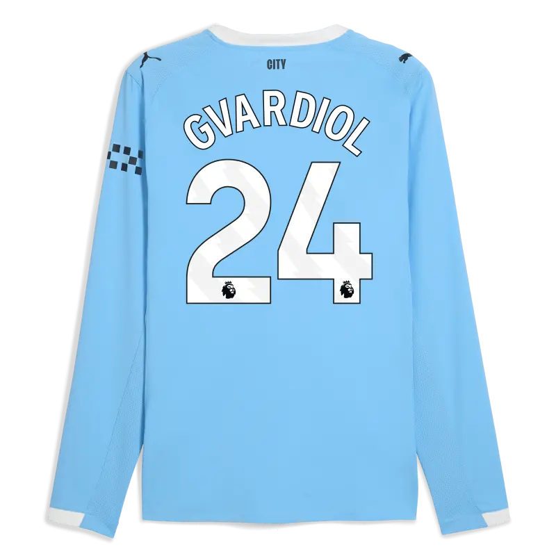 Manchester City Home Authentic Jersey 2025/26 Long Sleeve With GVARDIOL 24 Printing