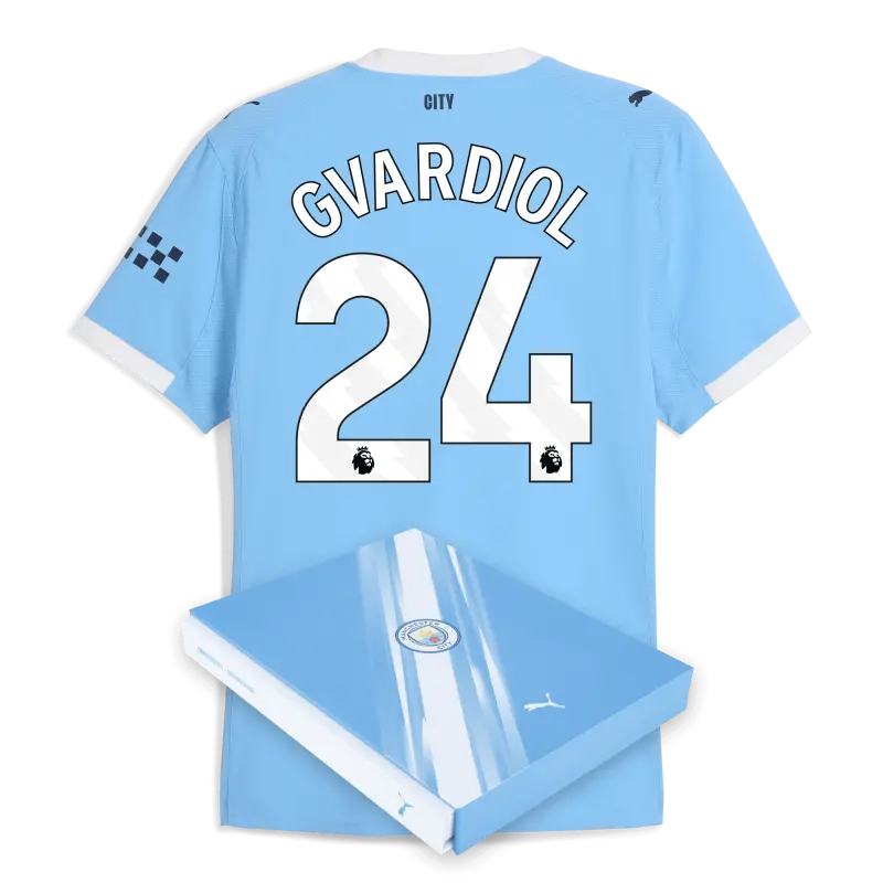 Manchester City Home Authentic Jersey 2025/26 With GVARDIOL 24 Printing in Gift Box