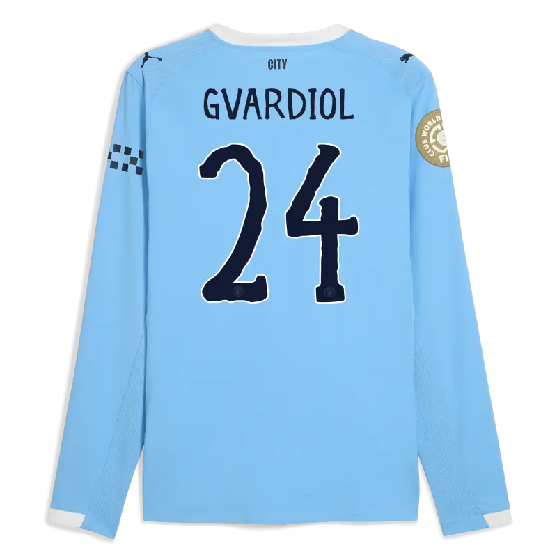 Manchester City KidSuper Club World Cup Home Authentic Jersey 2025/26 Long Sleeve With GVARDIOL 24 Printing