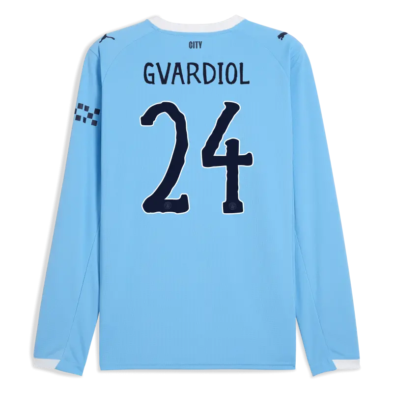 Manchester City Home Jersey 2025/26 Long Sleeve With GVARDIOL 24 Printing