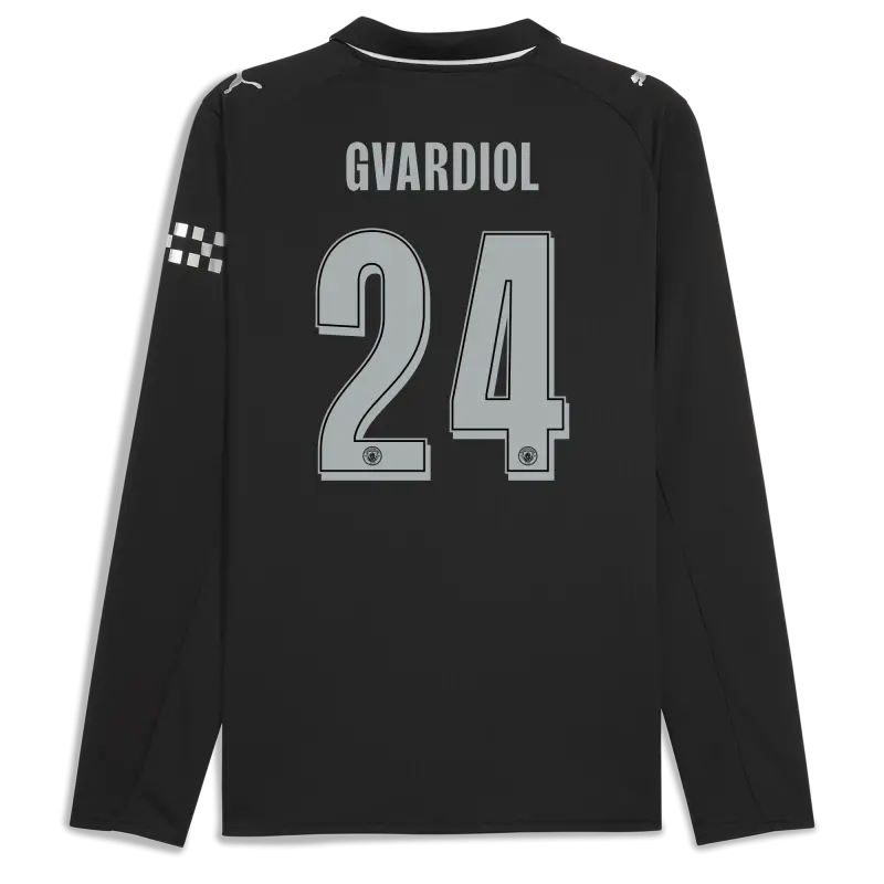 Manchester City Man City Away Jersey 2025/26 Long Sleeve With GVARDIOL 24 Printing