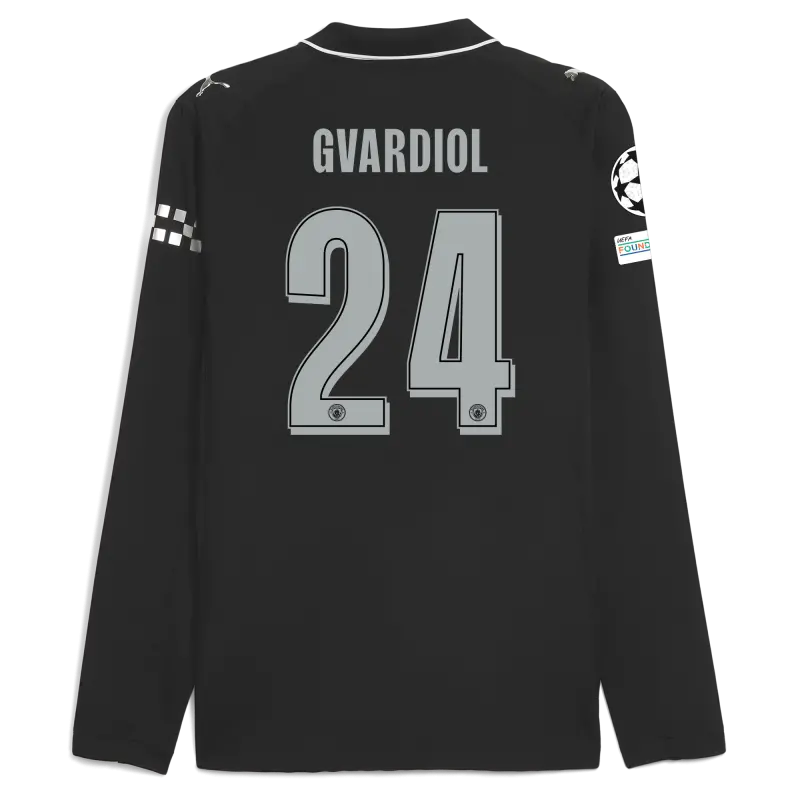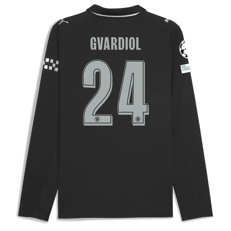 Manchester City Man City Champions League Away Jersey 2025/26 Long Sleeve With GVARDIOL 24 Printing