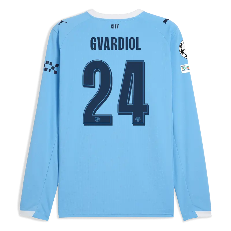 Manchester City Man City Champions League Home Jersey 2025/26 Long Sleeve With GVARDIOL 24 Printing