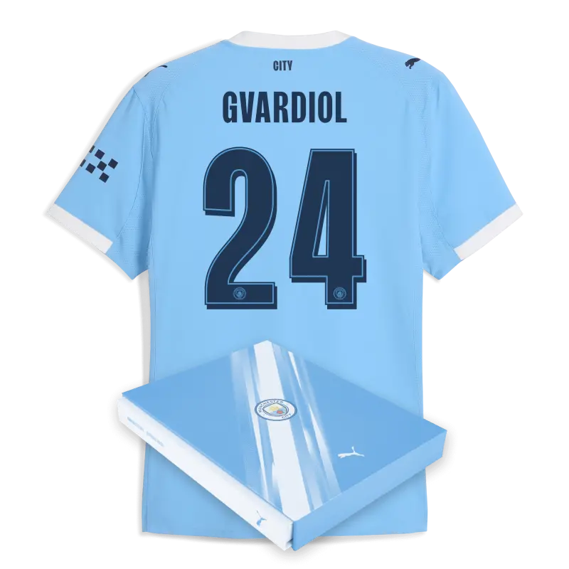 Manchester City Man City Home Authentic Jersey 2025/26 With GVARDIOL 24 Printing in Gift Box