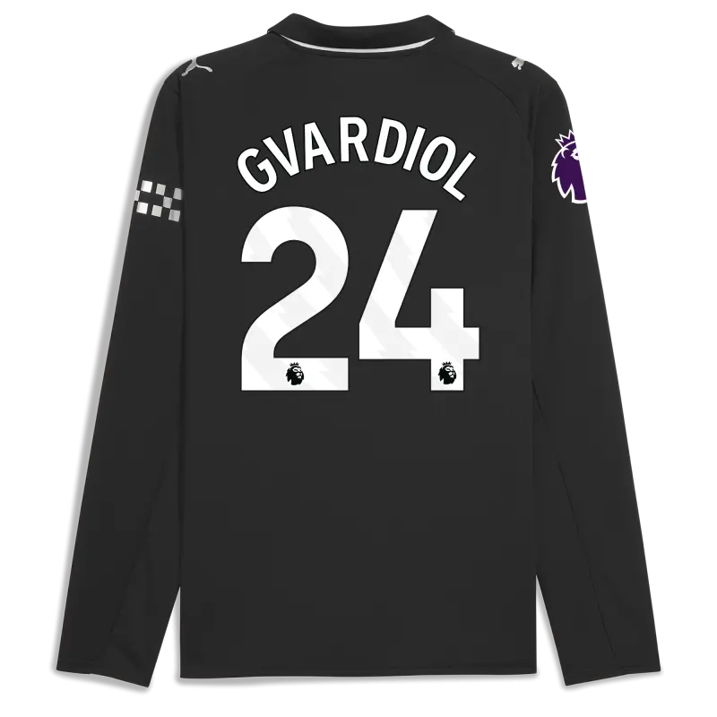 Manchester City Premier League Away Jersey 2025/26 Long Sleeve With GVARDIOL 24 Printing