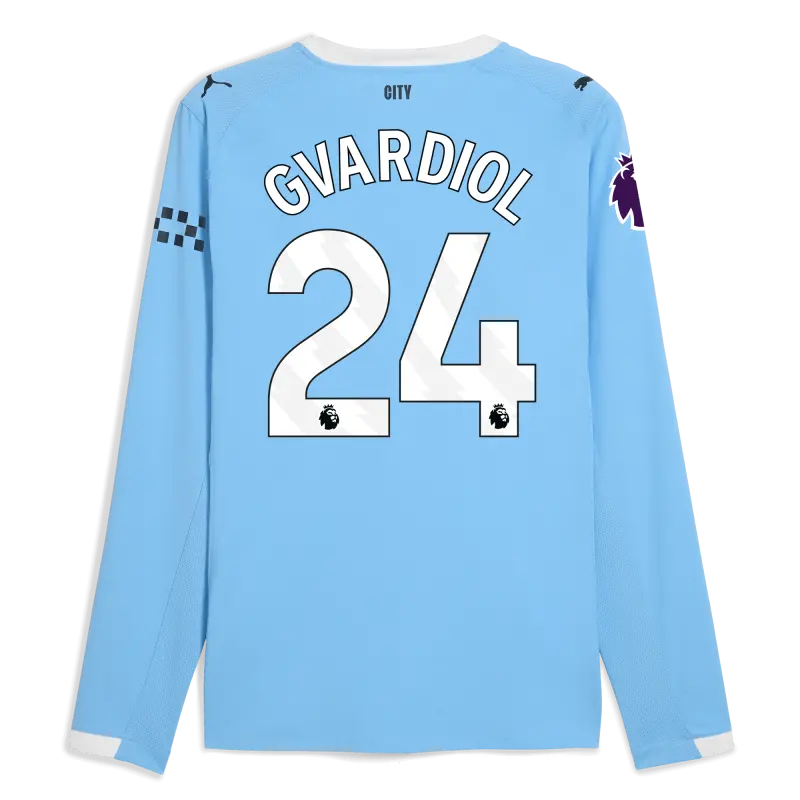 Manchester City Premier League Home Authentic Jersey 2025/26 Long Sleeve With GVARDIOL 24 Printing