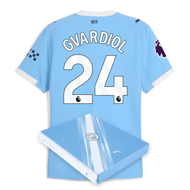 Manchester City Premier League Home Authentic Jersey 2025/26 With GVARDIOL 24 Printing in Gift Box