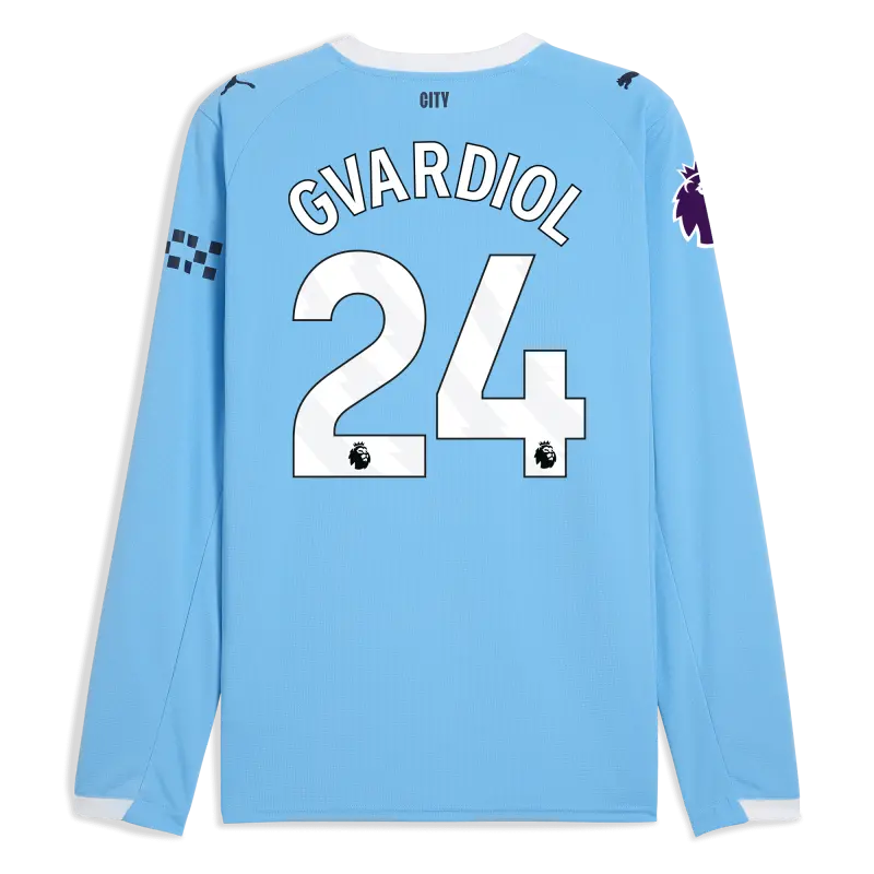 Manchester City Premier League Home Jersey 2025/26 Long Sleeve With GVARDIOL 24 Printing