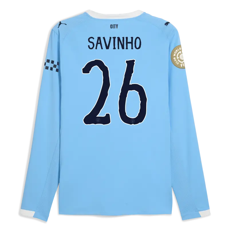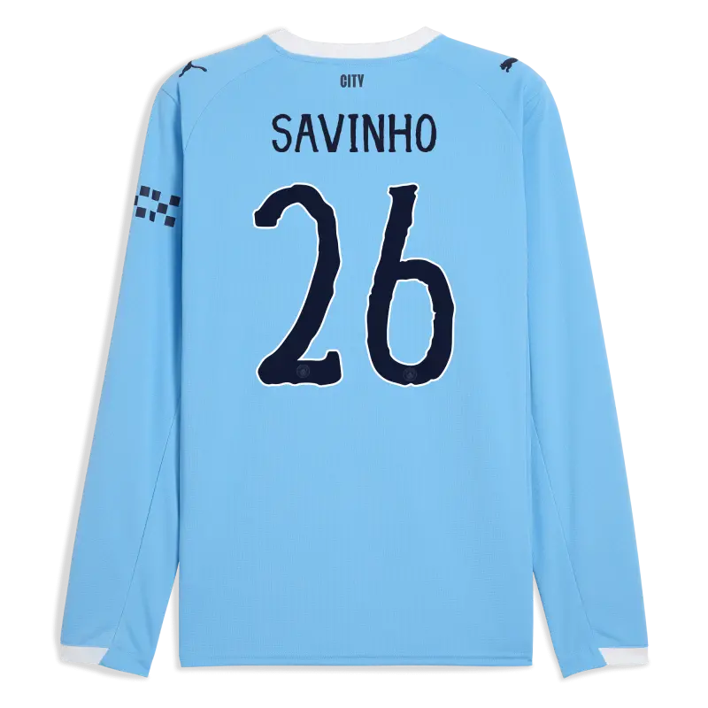 Manchester City Home Jersey 2025/26 Long Sleeve With SAVINHO 26 Printing