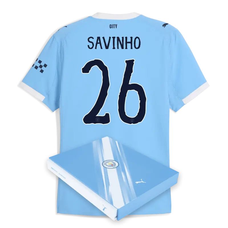 Manchester City Home Authentic Jersey 2025/26 With SAVINHO 26 Printing in Gift Box