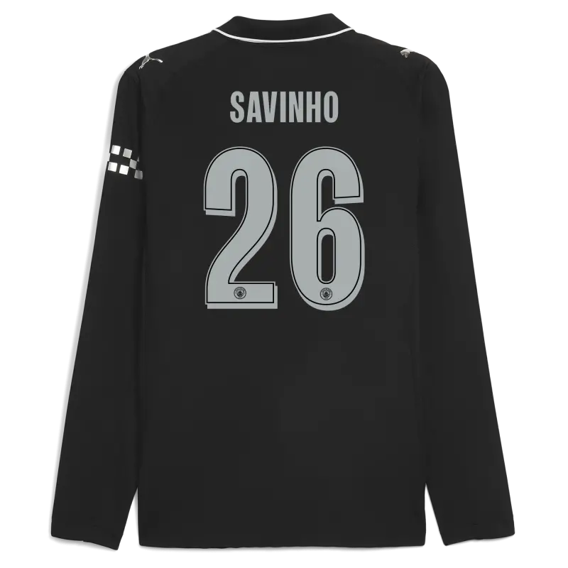 Manchester City Man City Away Authentic Jersey 2025/26 Long Sleeve With SAVINHO 26 Printing