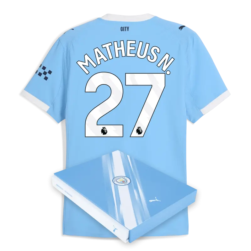 Manchester City Home Authentic Jersey 2025/26 With MATHEUS N. 27 Printing in Gift Box