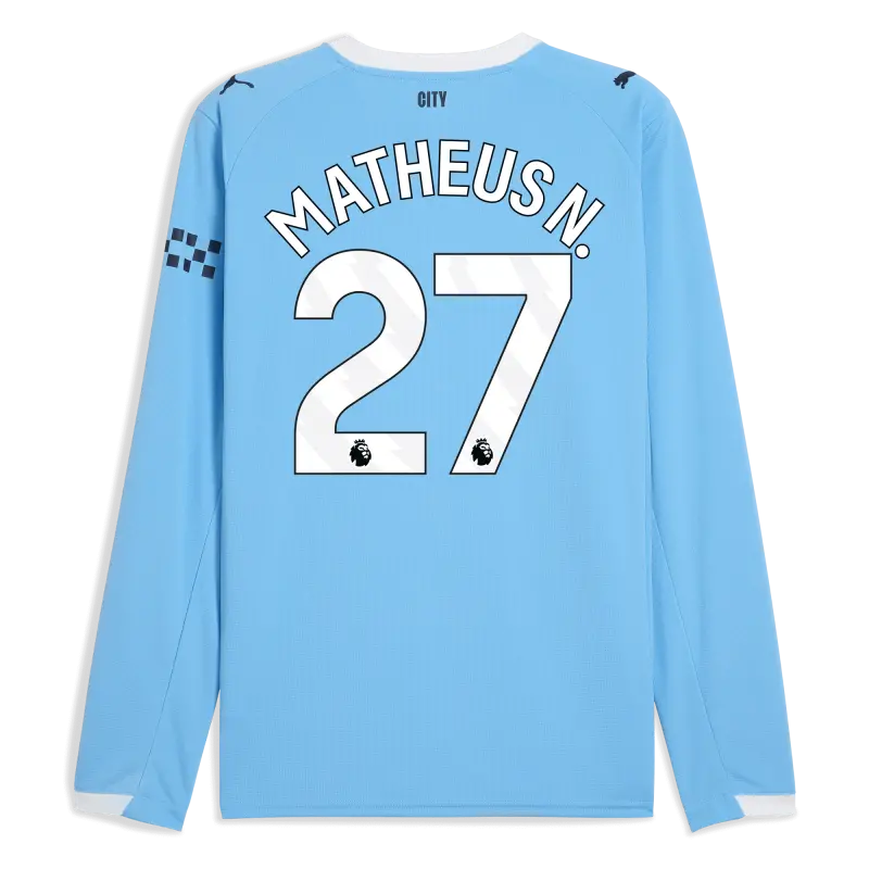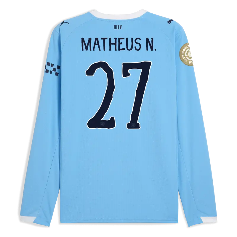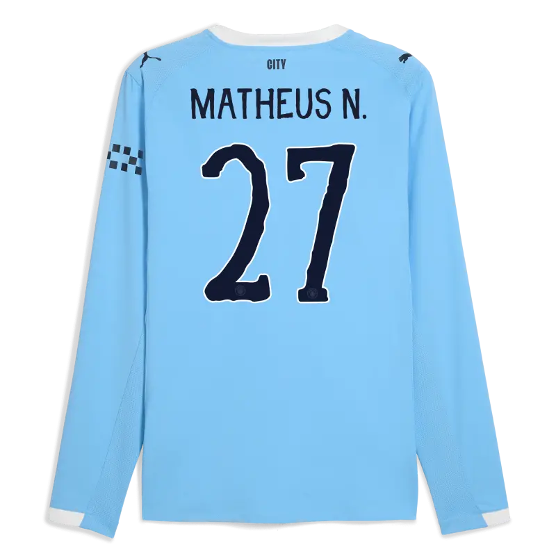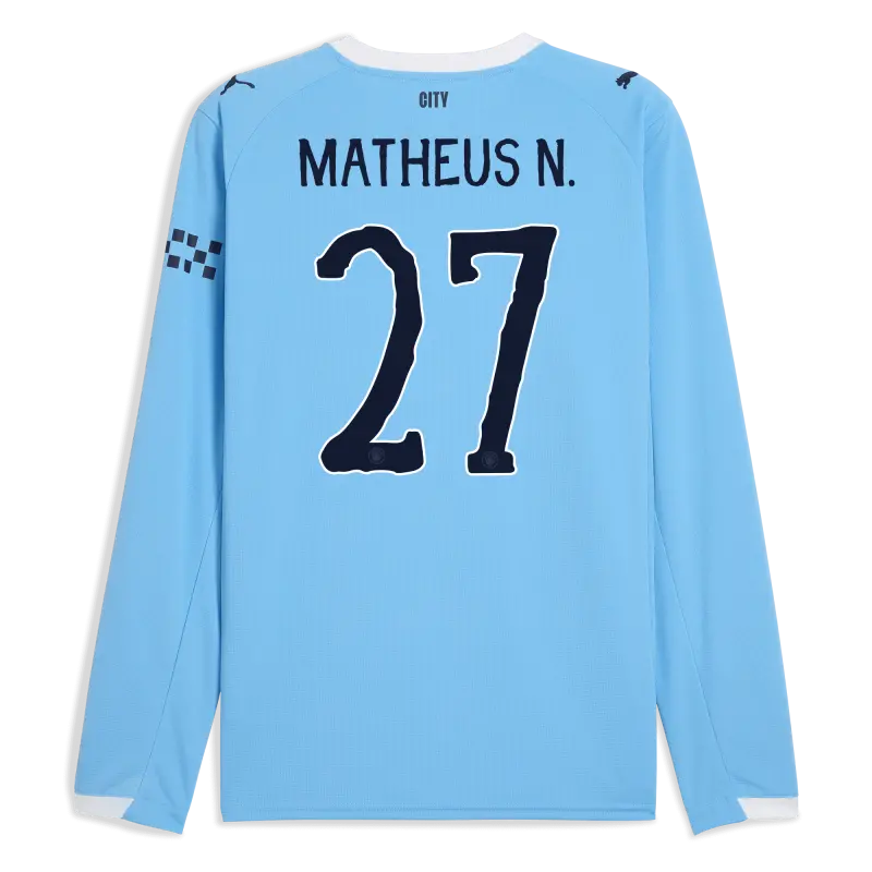 Manchester City Home Jersey 2025/26 Long Sleeve With MATHEUS N. 27 Printing