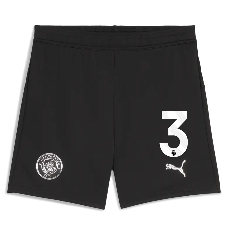 Kids’ Manchester City Football Shorts Black 2025/26 With #3