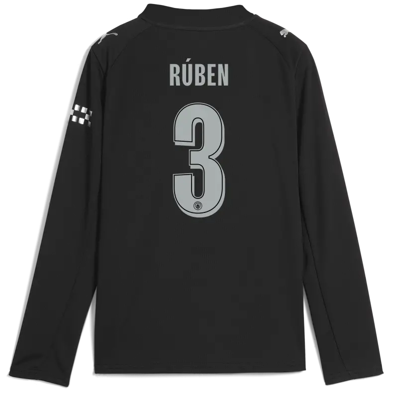 Kids’ Manchester City Man City Away Jersey 2025/26 Long Sleeve With RÚBEN 3 Printing