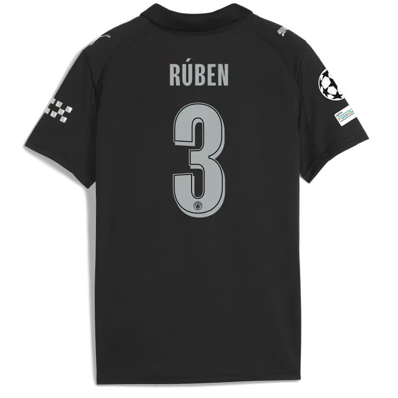 Kids’ Manchester City Man City Champions League Away Jersey 2025/26 With RÚBEN 3 Printing