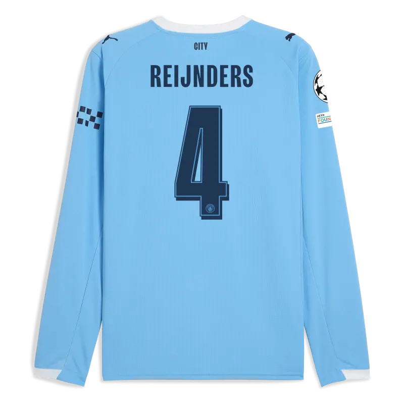Manchester City Man City Champions League Home Jersey 2025/26 Long Sleeve With REIJNDERS 4 Printing