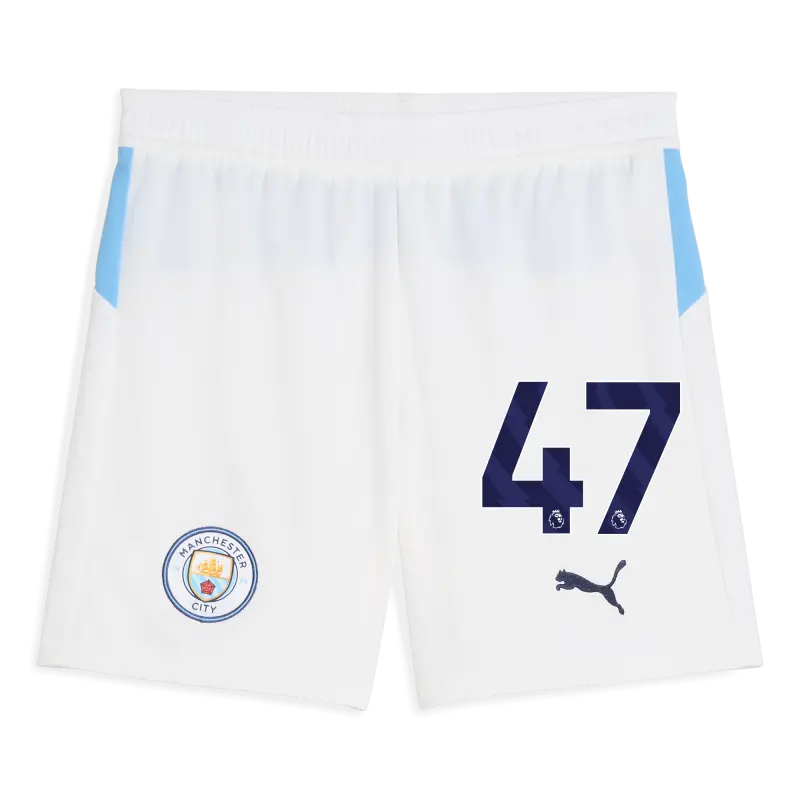 Kids’ Manchester City Football Shorts 2025/26 With #47