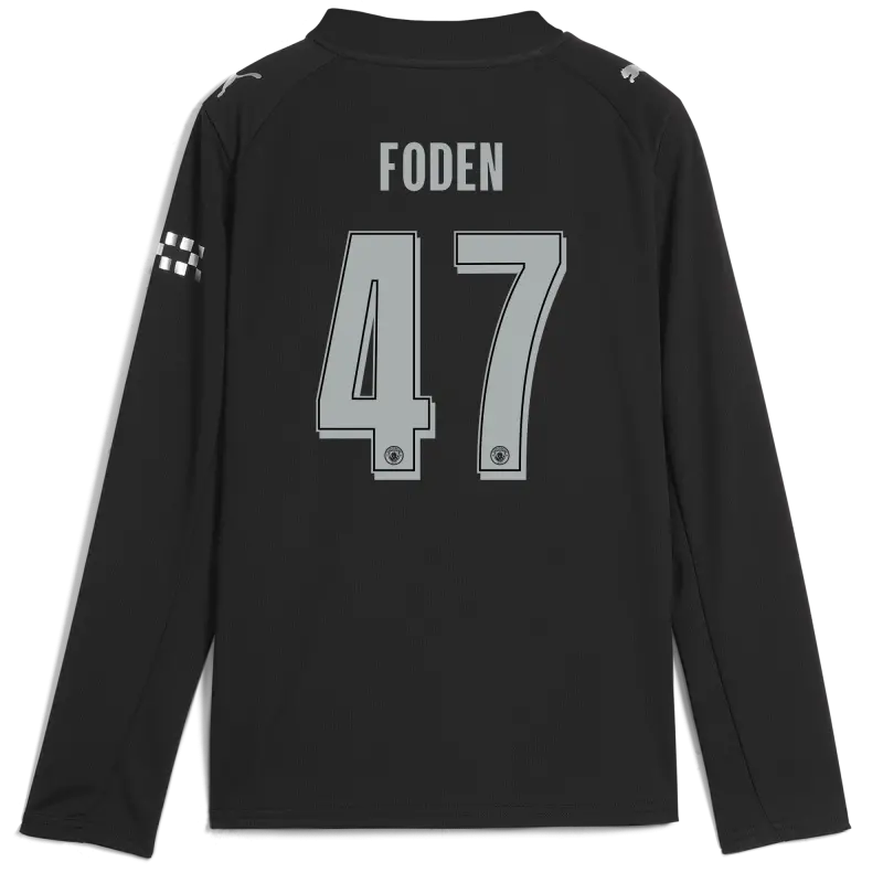 Kids’ Manchester City Man City Away Jersey 2025/26 Long Sleeve With FODEN 47 Printing