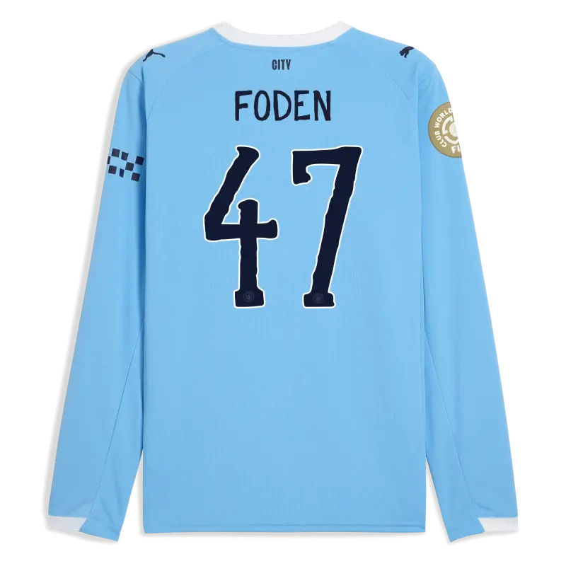 Manchester City Home Jersey 2025/26 Long Sleeve With FODEN 47 Printing