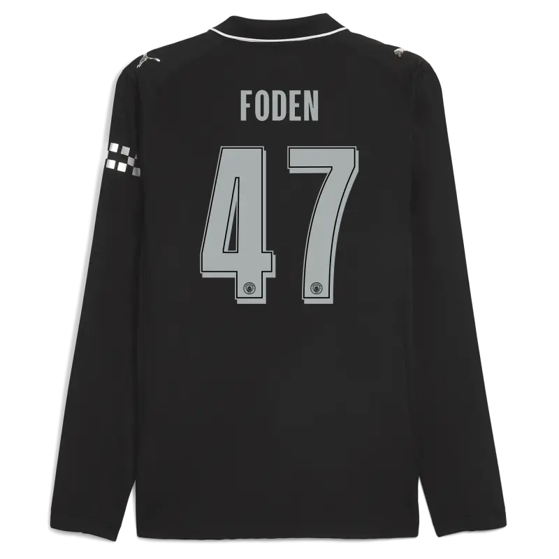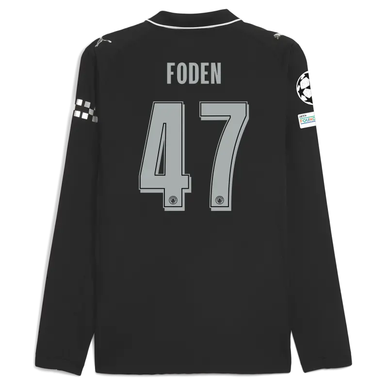 Manchester City Man City Champions League Away Authentic Jersey 2025/26 Long Sleeve With FODEN 47 Printing