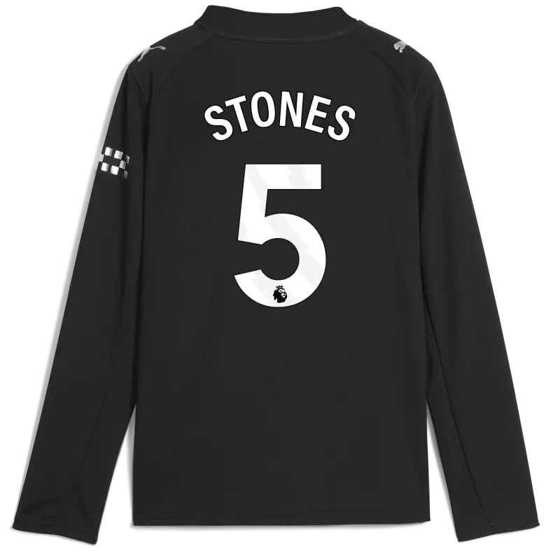 Kids’ Manchester City Man City Away Jersey 2025/26 Long Sleeve With STONES 5 Printing