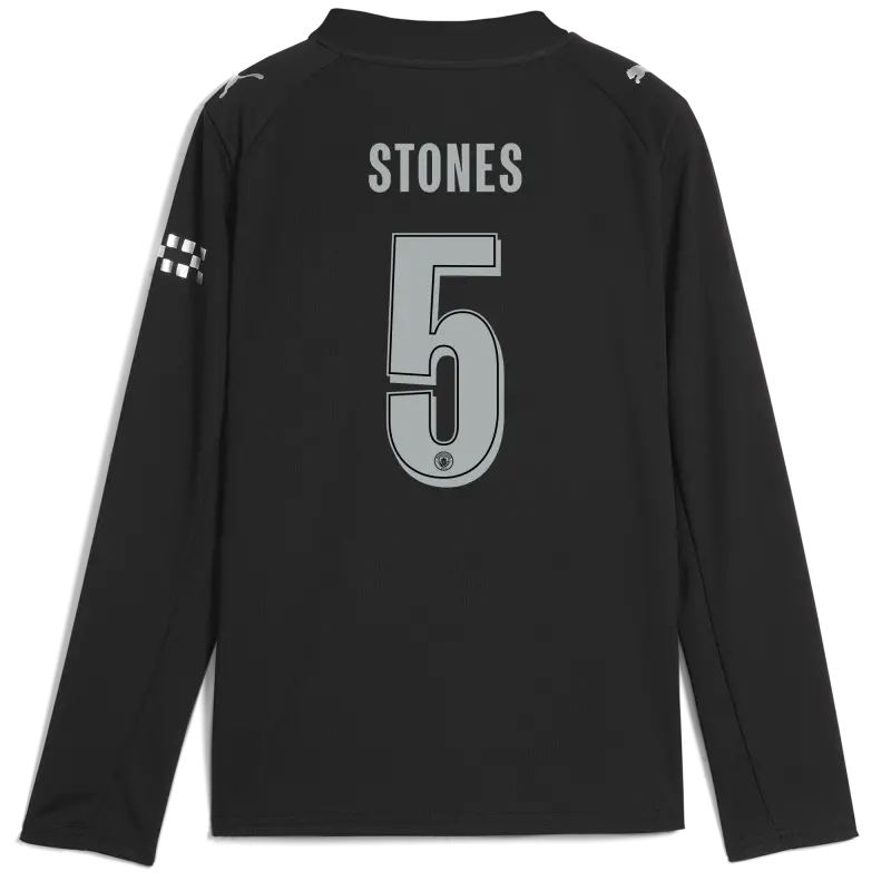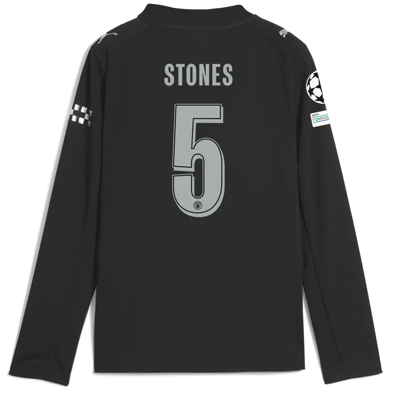 Kids’ Manchester City Man City Champions League Away Jersey 2025/26 Long Sleeve With STONES 5 Printing
