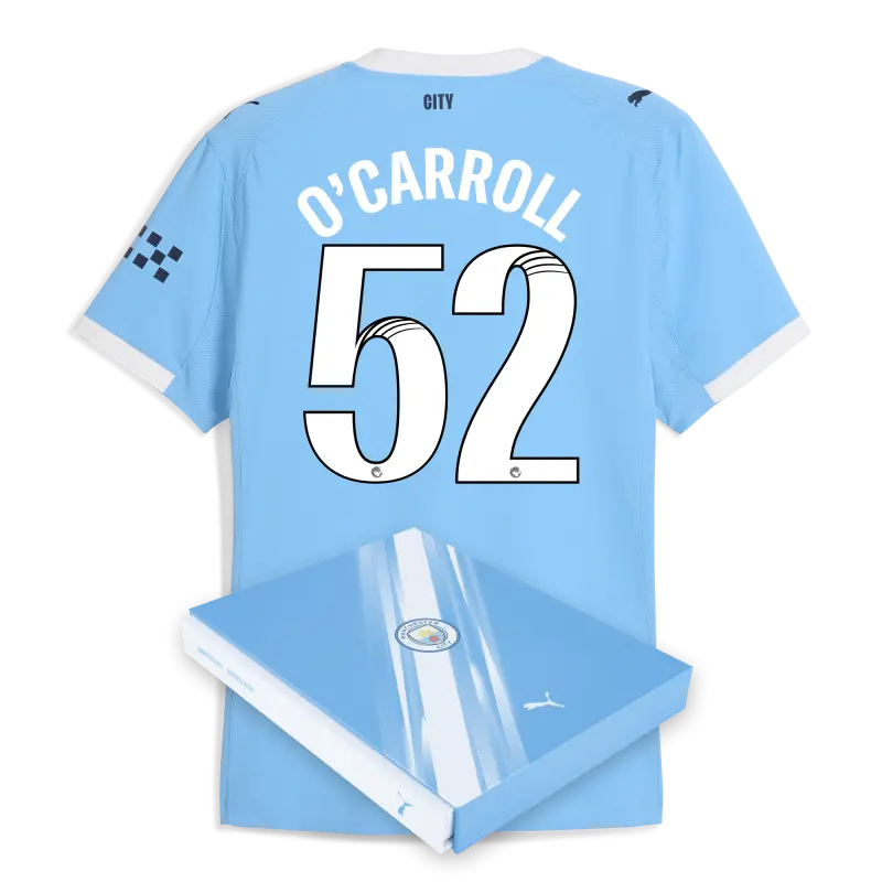 Manchester City Home Authentic Jersey 2025/26 With O’CARROLL 52 Printing in Gift Box