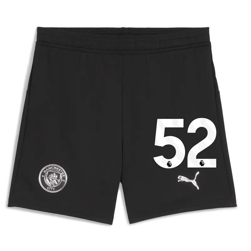 Kids’ Manchester City Football Shorts Black 2025/26 With #52