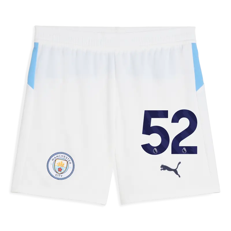 Kids’ Manchester City Football Shorts White 2025/26 With #52