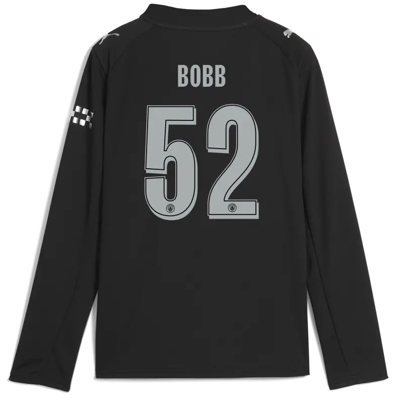 Kids’ Manchester City Man City Away Jersey 2025/26 Long Sleeve With BOBB 52 Printing