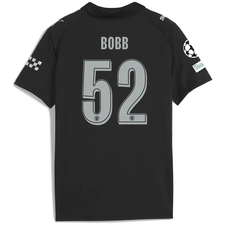 Kids’ Manchester City Man City Champions League Away Jersey 2025/26 With BOBB 52 Printing