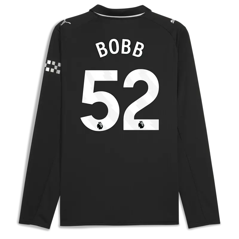 Manchester City Away Jersey 2025/26 Long Sleeve With BOBB 52 Printing
