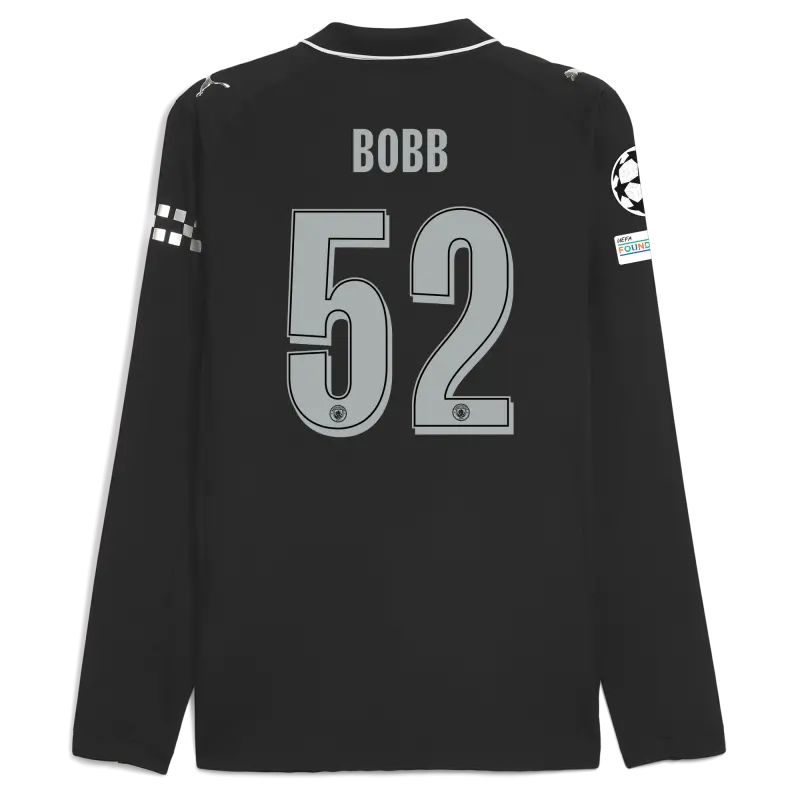 Manchester City Man City Champions League Away Authentic Jersey 2025/26 Long Sleeve With BOBB 52 Printing