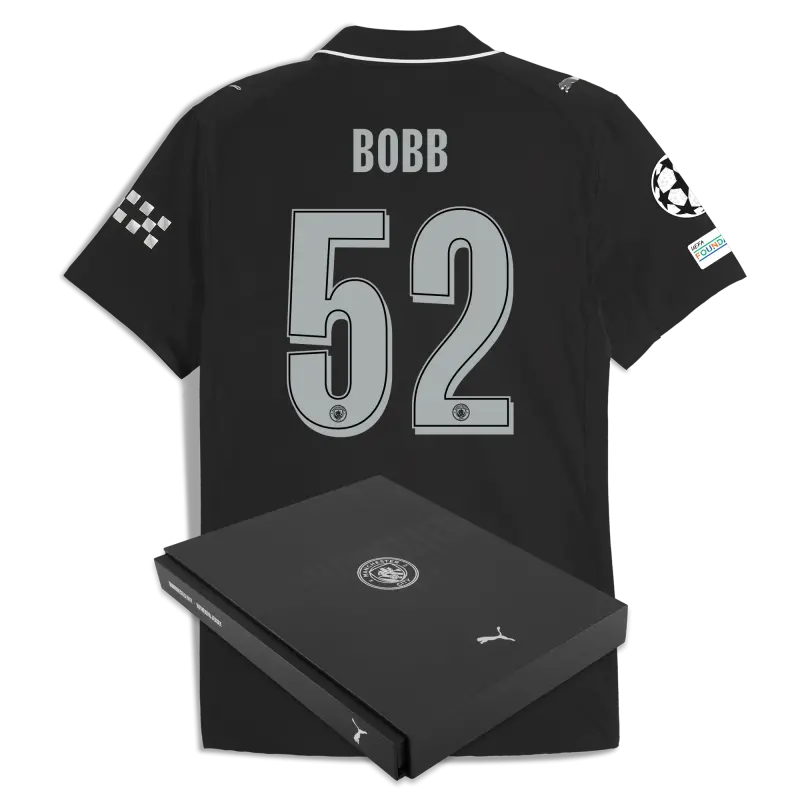 Manchester City Man City Champions League Away Authentic Jersey 2025/26 With BOBB 52 Printing in Gift Box