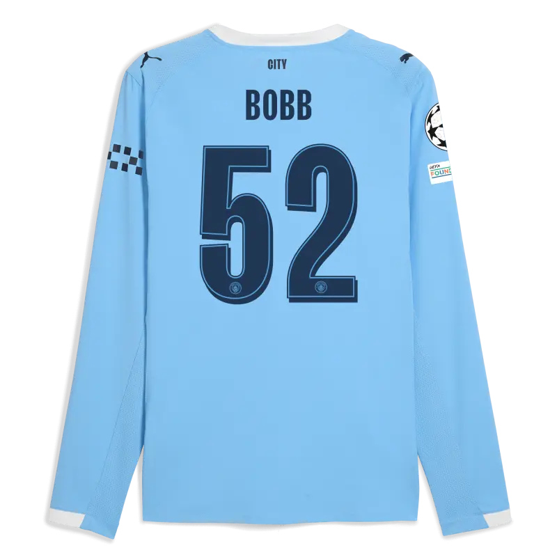 Manchester City Man City Champions League Home Authentic Jersey 2025/26 Long Sleeve With BOBB 52 Printing