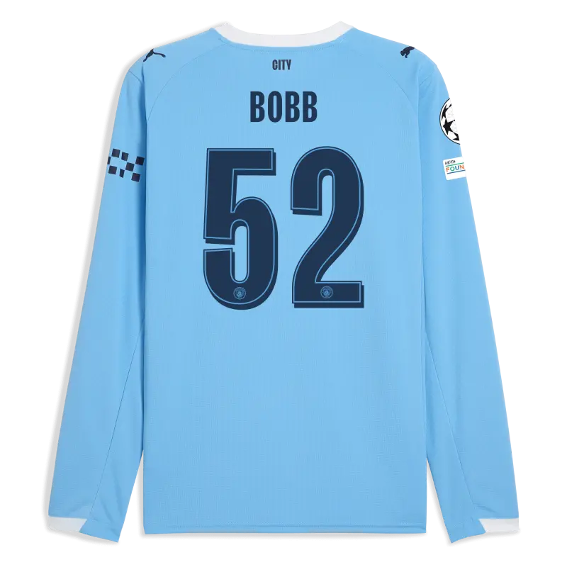 Manchester City Man City Champions League Home Jersey 2025/26 Long Sleeve With BOBB 52 Printing